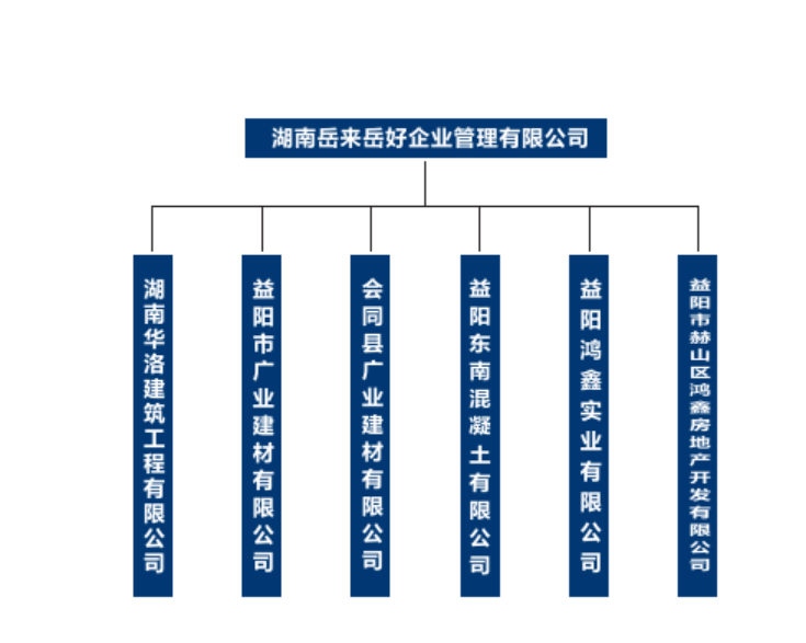 湖南岳来岳好企业管理有限公司,旗下有湖南华洛建筑工程有限公司、益阳市广业建材有限公司、会同县广业建材有限公司、益阳东南混凝土有限公司、益阳鸿鑫实业有限公司、益阳市赫山区鸿鑫房地产开发有限公司,是一家集房地产开发、工程承建、建筑材料供应、施工等建筑业务全覆盖的企业。